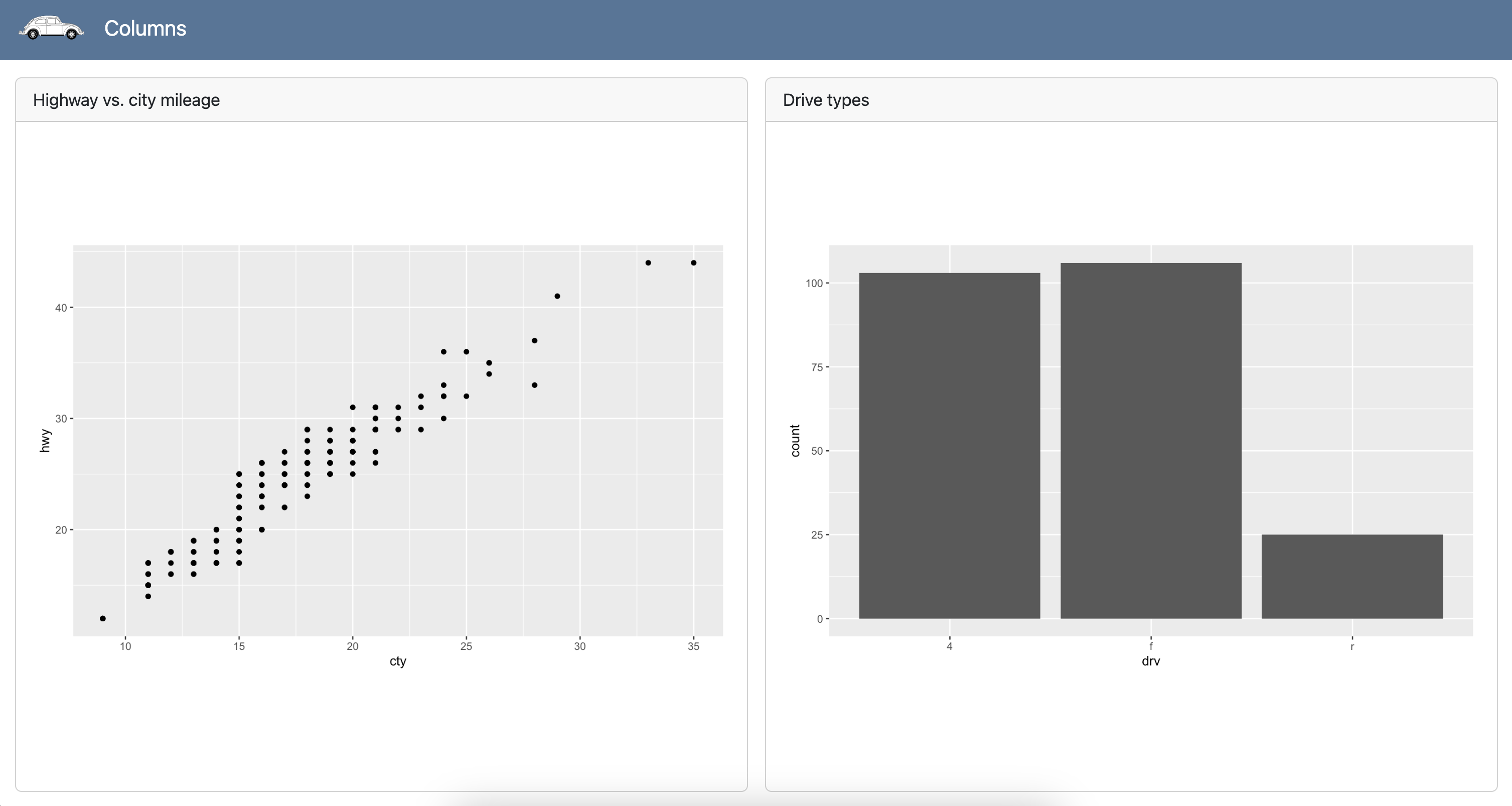 #| title: Highway vs. city mileage