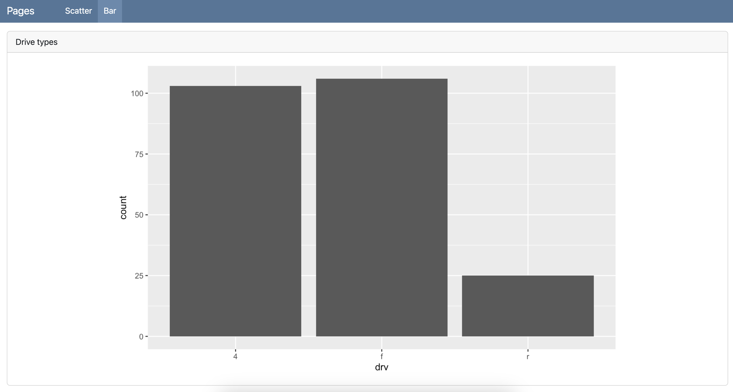 ggplot(mpg, aes(x = "drv"))